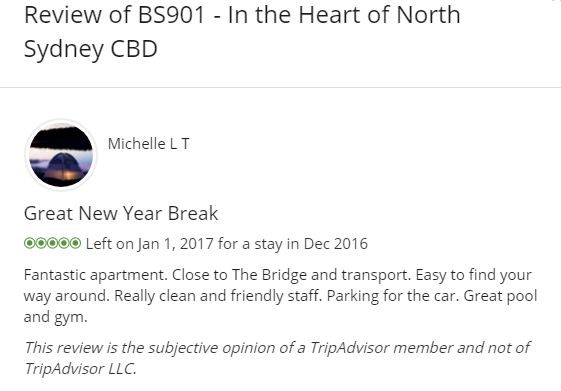 Fantastic apartment. Close to The Bridge and transport. Easy to find your way around. Really clean and friendly staff. Parking for the car. Great pool and gym.
